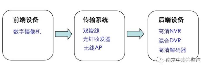 网络数字视频监控系统通常由摄像机等前端设备、传输系统和后端设备三大部分组成。