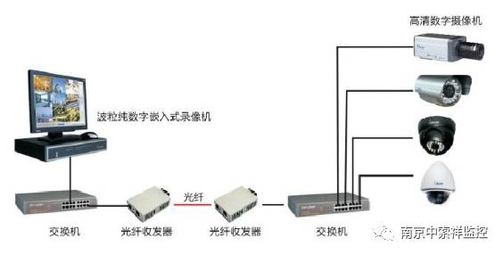 光纤因为具有频带宽、抗干扰性好、衰减小、便于施工等优点,广泛应用于大型长距离网络传输中。工程中通常将光纤分为多模光纤和单模光纤,单模光纤使用于远程通信,配合光纤收发器传送多路视频信号,解决了传统模拟系统中光端机价格高昂、多路信号复用/解复用过程中造成的画面失真。