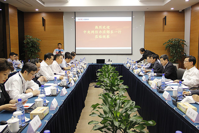 5月3日,中央网络安全和信息化领导小组办公室副主任、国家互联网信息办公室副主任庄荣文率团调研海康威视,中国电科副总经理胡爱民、海康威视董事长陈宗年向调研团做工作汇报。