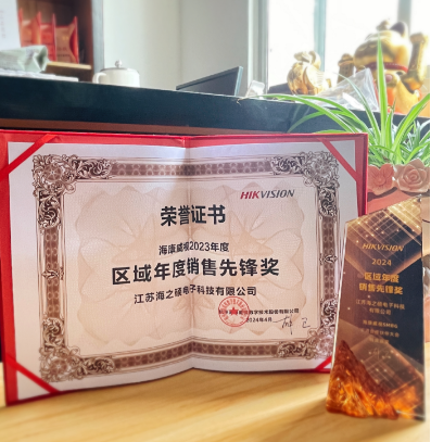 恭喜!江苏海之硕电子科技有限公司荣获海康威视2023年度销售先锋奖